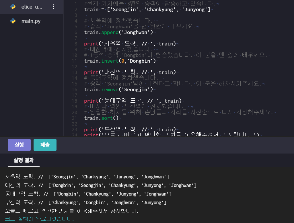 - 리스트에 원소 삽입, 제거, 정렬