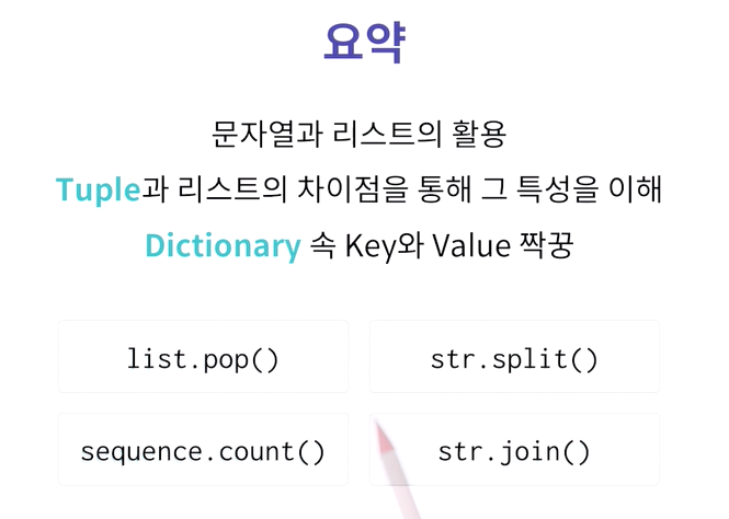 - 여러 자료를 담는 자료형이 필요하다면? -> 대부분 리스트를 이용 but 값이 바뀔 위험이 있다.